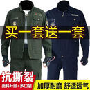 西塘先生两套装工作服装男防烫电焊劳保服外套加厚款春秋季工地宽松工装服 军绿581+藏蓝581常规 XL 175码(125-145斤)耐磨