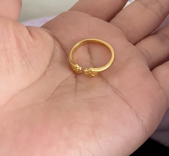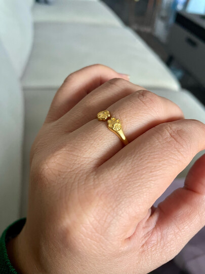 六福珠宝福满传家足金猫爪实心黄金戒指开口戒 计价 F41TBGR0004 4.38克(含工费315元)