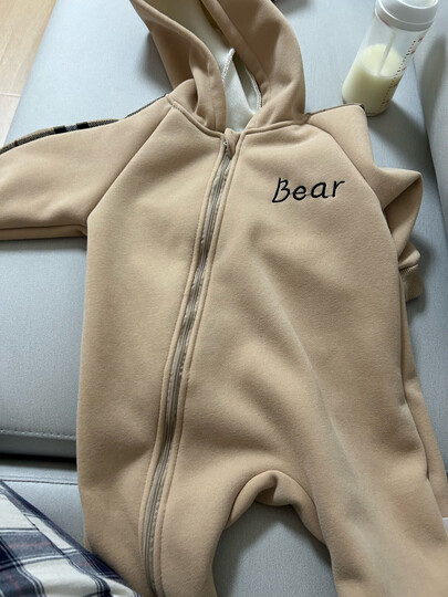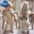迪士尼(Disney)婴儿连体衣春秋冬季加绒宝宝哈衣新生儿衣服婴儿可爱超萌外出服潮 [卡其色]带帽斜拉链(加薄绒) 80 80码建议6-12个月