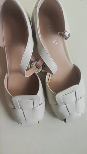 接吻猫KISSCAT凉鞋女夏季新款玛丽珍复古猪笼鞋高跟凉鞋KA54319-10 浅灰白色 38