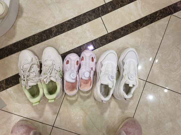 小孩子的鞋子粉粉的,很好看,小朋友试穿了也喜欢
