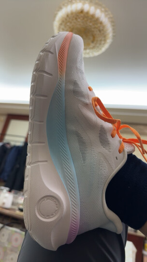 鞋子脚感非常不错,很舒服非常软 回弹非常强 穿上之后马上就在跑步机上试了试 非常满意 如果不是非常距离感觉中底也不会衰减 推荐大体重的