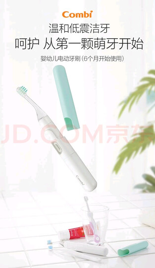 康贝儿童电动牙刷婴幼儿宝宝牙刷0-1-3岁软毛乳牙刷teteo 婴儿电动牙刷-亲子型 绿