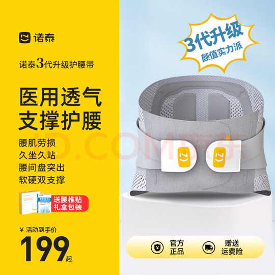 诺泰医用级护腰带腰间盘突出腰肌劳损久坐久站腰部支撑椎间盘护具轻薄 支撑护腰带灰色L码(腰围78-88cm)
