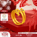 六福珠宝福满传家足金神龙摆尾双圈红蓝宝石生肖龙黄金戒指 N232A 12号-总重6.57克
