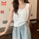 猫人(MiiOW)夏季新款ins复古镂空法式显瘦吊带背心女大码宽松内搭遮肚子上衣 白色 XL 120-140斤