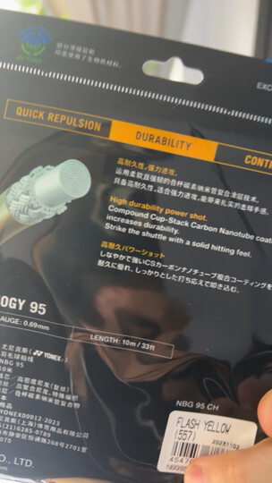 尤尼克斯(YONEX)专业羽毛球线bg65高弹耐打线bg65ti羽毛球拍线bg95训练比赛专用线 【nbg95 耐久高弹】闪黄