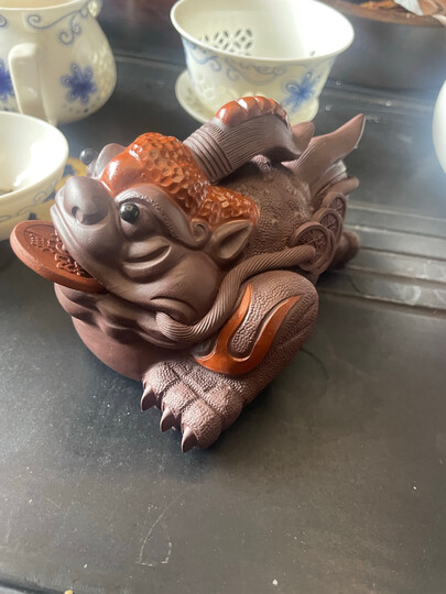 玺翰雅(ROYHOYE)宜兴紫砂茶宠茶玩茶具摆件精品可养蟾蜍茶壶茶道配件大号三足金蟾 三足金蟾-鸿运当头