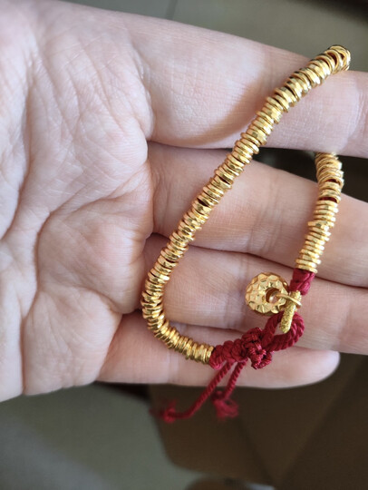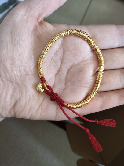 潮宏基 盘缠金黄金手链女本命年转运珠红绳手饰送女友生日礼物 计价 21.2g 绳长约22-23cm
