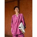 知筆墨玫瑰色重缎提花红云纱显白上衣 知笔墨夏季减龄桑蚕丝小衫 玫瑰色 均 码