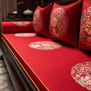 多满屋新中式红木沙发坐垫套罩实木家具沙发垫防滑垫子高端定制四季通用 富贵满堂-中国红【亚麻外套】 0.1cm*0.1cm 专业定制设计