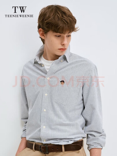 Teenie Weenie【男女同款】小熊男装条纹衬衫男春秋休闲细条纹长袖衬衣上衣 深灰色 XL 180