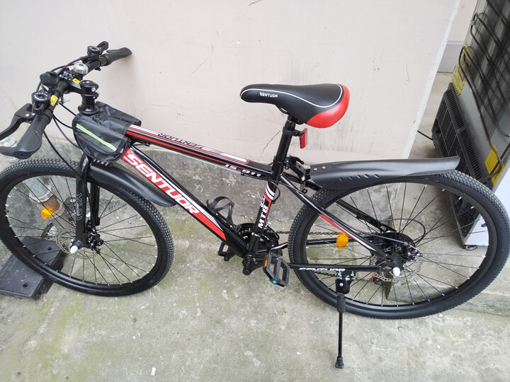 EG7山地自行车成人学生变速越野单车双减震赛车26寸青少年男女 辐条【加厚防滑轮-更安全】黑红 26寸21速【适合:160-180CM】