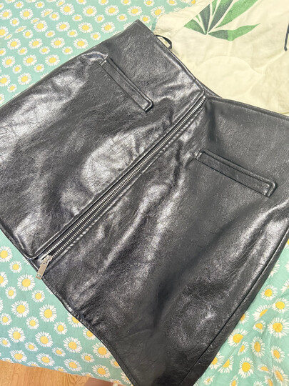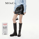 MO&Co.摇滚风前拉链高腰针织布底素皮PU皮A字短裙半身裙皮裙摩安珂 黑色-第2批 L 170