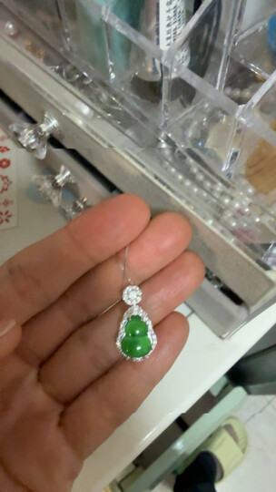 七彩云南A货翡翠吊坠女款S925银镶葫芦玉坠送女友送妈妈礼物 满绿葫芦0164