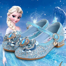 女童高跟鞋春秋爱莎冰雪奇缘公主水晶软底单鞋艾莎小孩皮鞋儿童鞋 高跟蓝色 27码/鞋内长17.5厘米