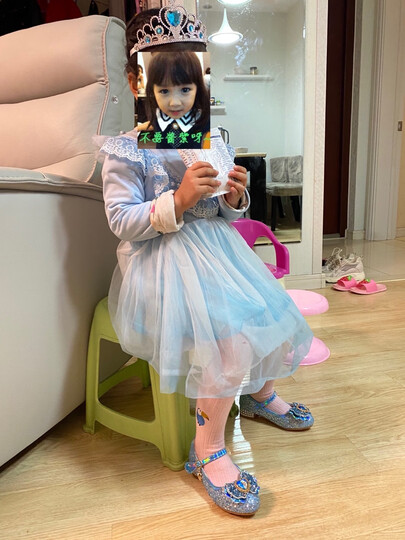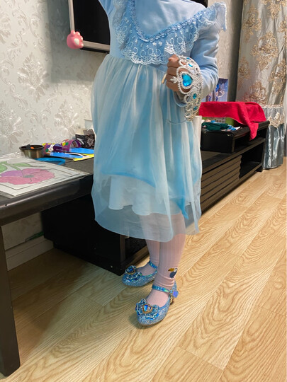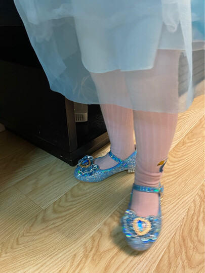 女童高跟鞋春秋爱莎冰雪奇缘公主水晶软底单鞋艾莎小孩皮鞋儿童鞋 高跟蓝色 28码/鞋内长18.1厘米