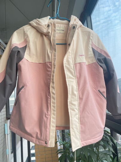 戴维贝拉(DAVE&BELLA)男童连帽外套男宝宝上衣秋冬装新款童装洋气儿童外衣女童服饰 粉色【加绒款】DB3241555 130 cm(建议身高120-130cm)