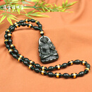 通宝福天然金镶玉项链男士款和田玉观音吊坠黄金玉石玉珠子挂绳套装 款式一:23颗金镶玉链+单手观音