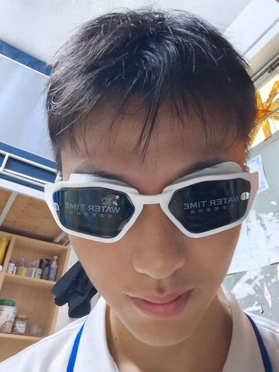 WATERTIME泳镜 大框高清近视镀膜防水防雾男女成人游泳眼镜泳帽套装备 闪灵/白 左右不同拍此项联系客服备注度数