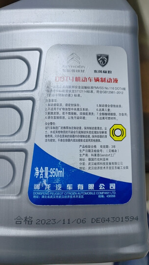 大众(Volkswagen)雪铁龙原厂刹车油制动液C5天逸凡尔赛408308C4L世嘉爱丽舍C3XR DOT4单瓶0.95升