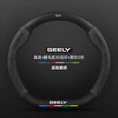 HOCASEN吉利方向盘套翻毛皮汽车把套星越l/博越/星瑞/帝豪/缤越/豪越熊猫 真皮 翻毛皮3D压印 黑色D形 吉利黑标