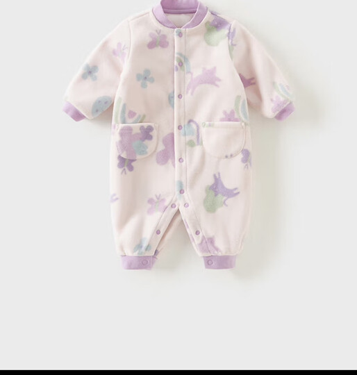 戴维贝拉(DAVE&BELLA)初生婴儿摇粒绒连体衣0-3个月宝宝爬服秋季新款小童包屁衣新生儿 紫色花园【DB3243402】 80cm (建议身高73-80cm)
