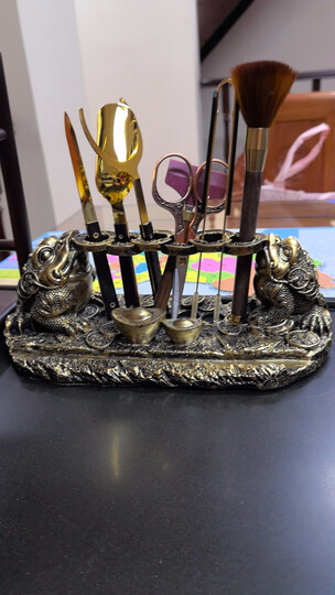 古德窑 茶具配件茶道六君子整套功夫茶具茶台茶桌泡茶工具配件大全套装 金蟾架+高档6件套+茶巾+茶剪刀