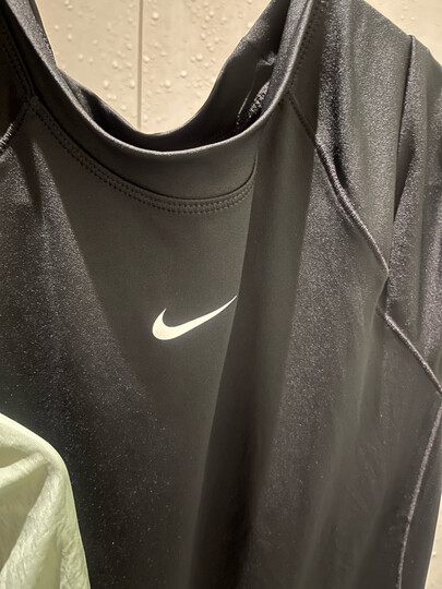 这款T恤领子比较高,比较修身,黑色显瘦,挺不错的,穿着运动打羽毛球也不会闷汗,好洗,材质也容易干,还想入手一件白色来着哈哈哈。