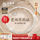 老凤祥纯足银手镯子女款正品生日礼物实心首饰品送女友老婆年轻时尚 繁花蝴蝶手镯【老凤祥品牌礼盒】 25±1g配证书