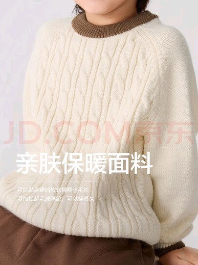 巴拉巴拉童装小童大童毛衣套头2025新款秋冬装打底衫男童女童撞色学院风潮 白咖色调00315 150