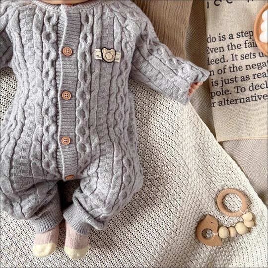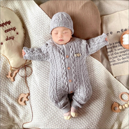 格素凡婴儿毛衣连体衣秋冬婴幼儿衣服冬季线衣小孩睡衣宝宝针织打底哈衣 白色 (送帽子) 66