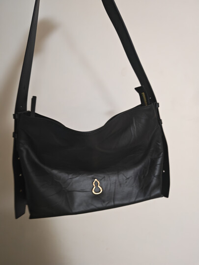 半坡饰族(bampo)中号绵绵包hobo托特包头层牛皮大容量单肩斜挎包软包礼物女友 墨碳黑(中号升级拉链款)