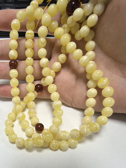 拉韫翡音天然俄料白花蜜蜡手串108颗佛珠收藏级7A多圈琥珀手链男女款带证 直径7.5+mm手围14、18、19