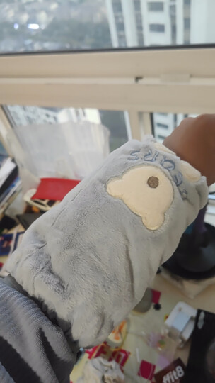 畅印七夕毛绒袖套女秋冬可爱成人套袖加长版防脏护袖办公室工作干活 可爱小熊-蓝色