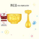 潮宏基 平安吉象金饭碗黄金汤勺宝宝足金摆件周岁满月礼物C 吉祥金饭碗