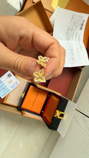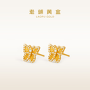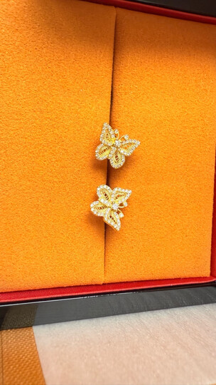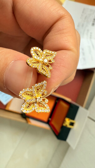 老铺黄金古法手工足金耳饰 · 花丝钻饰蝴蝶耳钉 一对重约2.6g(含胶垫)