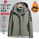 皮尔卡丹冲锋衣外套男三合一可拆卸春秋冬季男士夹克休闲户外防风登山衣服 军绿色 (三合一可拆卸) 2XL (建议140-160斤)