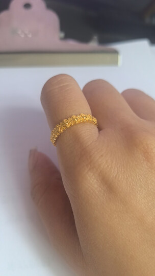 老庙黄金戒指足金古法花丝女戒送女友老婆生日节日礼物 约3.6g/12号(适用11-13#)
