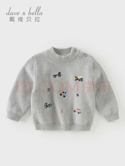 戴维贝拉(DAVE&BELLA)男童冬装毛衣加绒儿童针织衫半高领小童套头上衣冬季新款宝宝衣服 花灰色【现货】 100 cm(建议身高90-100cm)