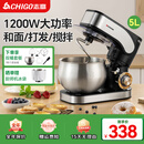志高(CHIGO)厨师机家用揉面机小型全自动和面机多功能蛋清奶油打发器搅拌面粉活面 黑色1200W丨 5L 容量丨双桶套餐