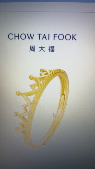 周大福皇冠足金首饰婚嫁黄金戒指女活口戒(工费:120计价)EOF1601 足金 约2.70g