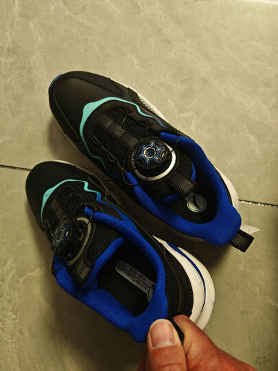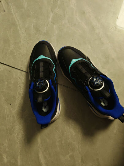 安踏儿童运动鞋男女童跑步鞋秋冬季网革旋钮扣犟弹科技学生赤焰跑鞋 【男革面】黑/蓝/绿5523N-2 36 脚长约23cm