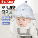 纪奈落婴儿防护面罩新生儿防护帽防飞沫隔离面罩宝宝遮阳儿童渔夫帽 蓝云朵拉链款 【42CM:0-3个月】