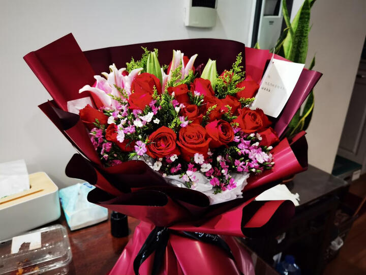 收到花之际,花朵的状态良好,花瓣上似乎还带着花农的爱意。配送相当及时,没有让我久等。女朋友比我预想的还要兴奋,花束新鲜艳丽,花朵们的颜色鲜活而富有情感,包装精美,像是饱含深情的包裹。