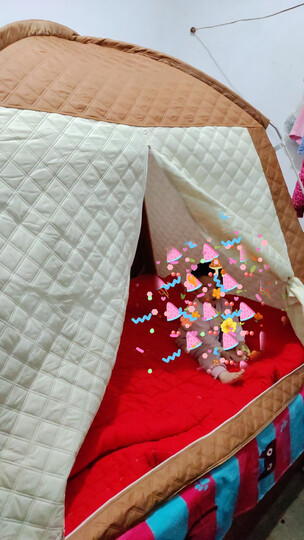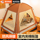 梦多福帐篷室内 保暖床上帐篷家用秋冬季防寒加棉加厚成人儿童夹棉帐篷 宽150*长200*高145cm 焦糖色 【升级加厚保暖夹棉】