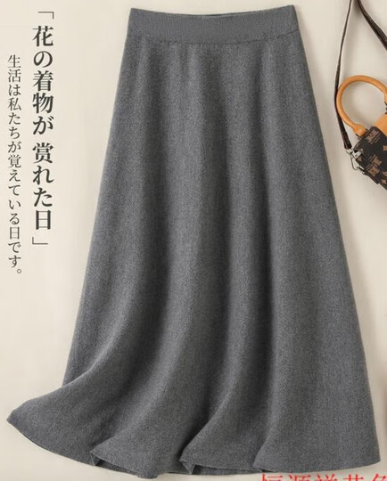 恒源祥100%纯羊毛半身裙秋冬中长款高腰摆裙韩版羊毛加厚A字裙针织伞裙 灰色 XL【建议120-140斤】