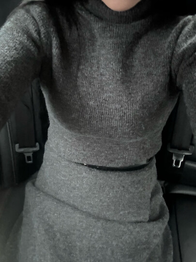 艾珠儿(Aizhuer)小香赫本风针织连衣裙子冬季2025年新款茶系时尚穿搭女套装秋冬 深灰色套装+赠腰带 均码 (建议80-140斤)