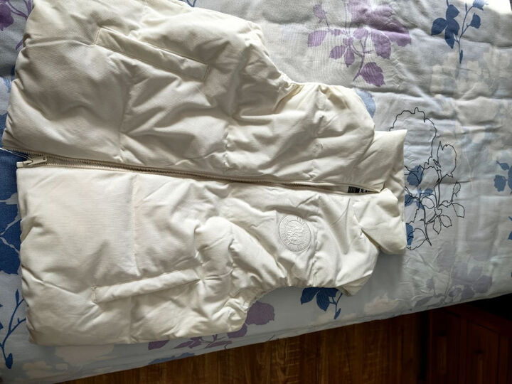 这款羽绒坎肩非常棒,白色的百搭,宽松版稍微肥一点,外穿挺好看的。外层柔软舒服,内层是化纤面料的,总体好评。商家发的顺丰快递,很快的到货啦。