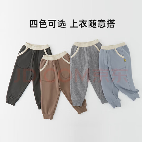 papa爬爬秋冬儿童宝宝纯色收口卫裤男女童宽松休闲可爱外出运动裤 浅棕色 90 cm